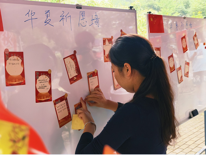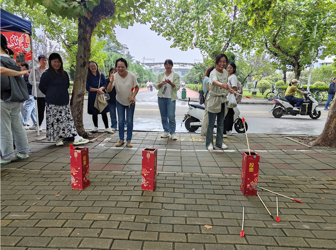 为弘扬中华优秀传统文化、厚植家国情怀,9 月 30 日上午,材料与化学工程学院团委宣传部在学校图书馆前举办“喜迎华诞国庆,共赴圆满中秋” 双节主题活动,设置投壶体验、中秋灯谜竞猜、“青春告白祖国” 心愿寄语三项互动,吸引师生踊跃参与。