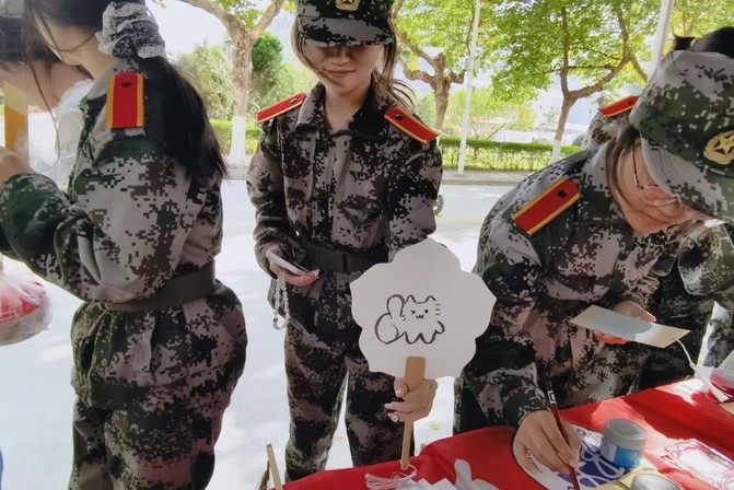 “巧手绘漆扇,秋意寄清风”。同学们以毛笔为媒介,于素白漆扇之上勾勒出洋溢童真的简笔画。指尖灵动,笔墨之间尽显对重阳节的理解,亦展现出同学们对传统节日的祝福与巧思。