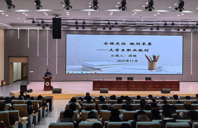 汤骏结合往届学生就业案例,直观呈现了职业规划对个人成长的重要性,针对低年级学生“迷茫无措”、高年级学生“求职焦虑”的不同痛点,从“自我认知、职业探索、目标设定、路径实施”四个维度展开详细讲解。汤骏分享了学院近三年的就业、考研情况,引导学生结合自身兴趣、能力与行业需求制定个性化职业规划。针对考研、考编、就业、创业等不同发展路径,他逐一拆解了时间规划、备考策略、资源获取等关键节点,给出了具体可操作的建议。最后,汤骏介绍了全国大学生职业规划大赛情况,围绕大赛的参赛对象、报名流程、作品要求、评审标准等板块展开解读,并结合往届优秀作品案例为同学们提供了借鉴和指导。