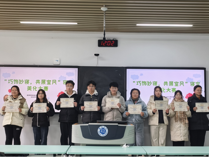 本次大赛旨在促进各寝室成员间的协作与沟通,增强集体凝聚力,营造温馨和谐的居住氛围,使寝室成为学子放松身心的舒适港湾。同时引导学生将寝室美化成果转化为长期的生活习惯,推动整洁有序的住宿环境建设常态化,营造和谐、积极、健康的校园文化氛围。(撰稿:朱冲;编辑:李海燕;审核:张敏)