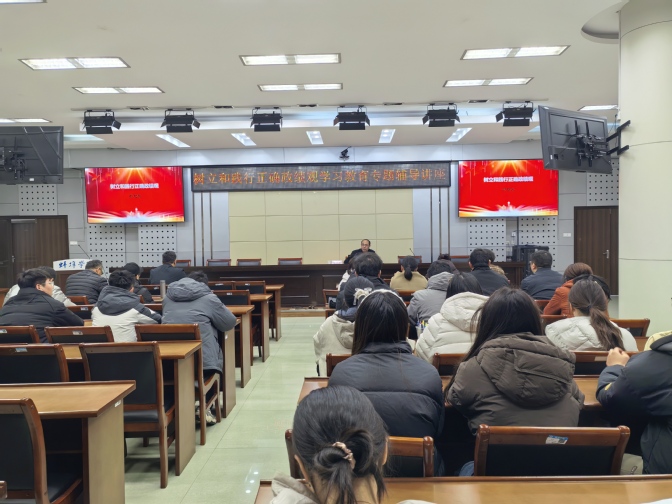 3月19日下午,学院特邀学校纪委委员、人事处处长邬旭东教授作专题辅导报告。报告从“政绩为谁而树、树什么样的政绩、靠什么树政绩”三个核心问题切入,深入解读了习近平总书记关于树立和践行正确政绩观的重要指示精神,强调党性是树立正确政绩观的决定性因素,唯有摒弃私心杂念,才能确保政绩观不偏航、不走样。报告结合学校工作实际,重点阐述了如何立足教学科研岗位践行正确政绩观,如何将为民造福的理念融入人才培养、学科建设和社会服务中,如何以真抓实干的作风创造经得起实践、人民、历史检验的实绩。报告既有理论高度,又有实践深度,为师生党员厘清思想迷雾、校准行动航向提供了有力指导。