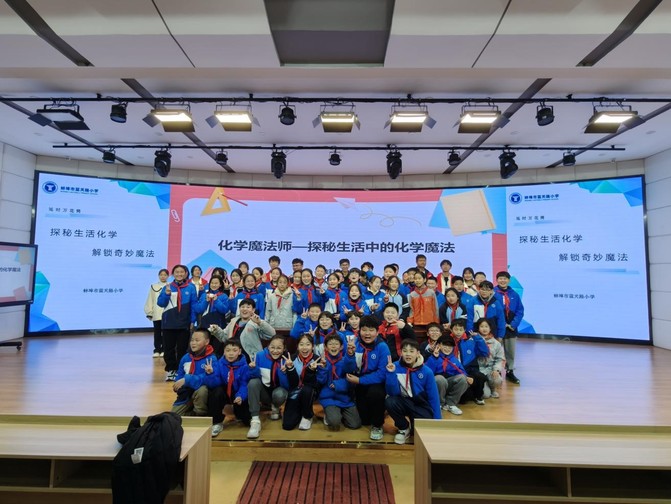 学院青协走进蓝天路小学,开展“化学魔法师——探秘生活中的化学魔法”主题科普活动。志愿者以童趣语言讲解化学知识,利用紫甘蓝、维生素C片等生活材料演示色彩鲜明的化学实验,让孩子们在动手操作中感受科学魅力,有效激发青少年的科学兴趣与探索精神。