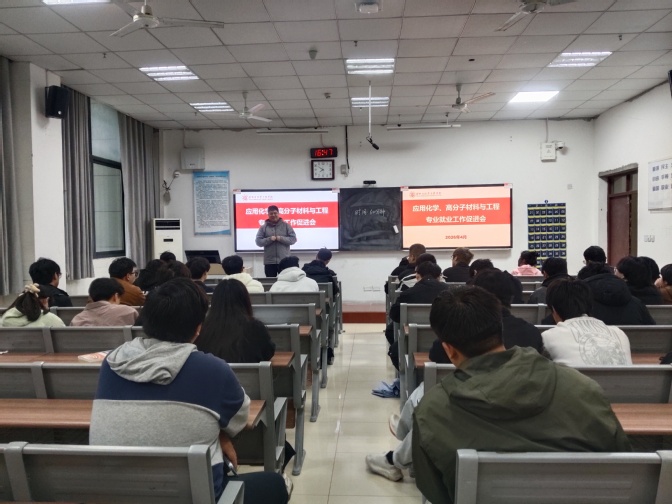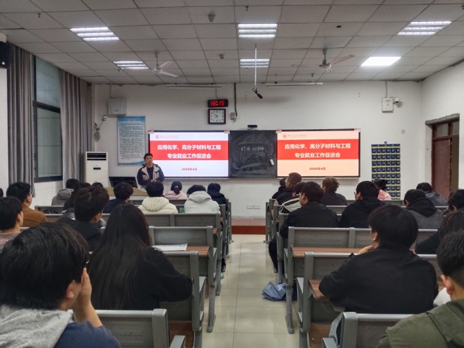 为进一步扎实推进毕业生就业工作,帮助未就业学生认清就业形势、掌握求职技巧、树立正确就业观念,4月9日下午,材化学院在G102教室举办应用化学和高分子材料与工程专业就业促进会。应用化学教研室主任孙超、专业负责人高燕,高分子材料与工程教研室主任丁永良、专业负责人宋任远出席本次会议,两个专业六十余名学生参加,会议由毕业班辅导员汤骏主持。